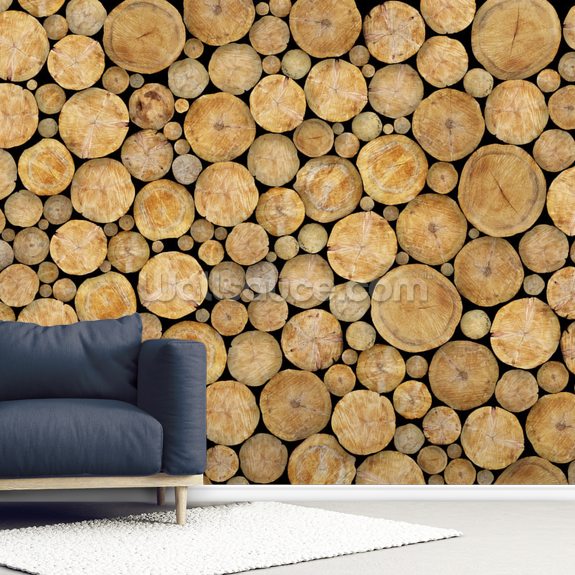 Stacked Log Pile Wall Mural Wallsauce Eu