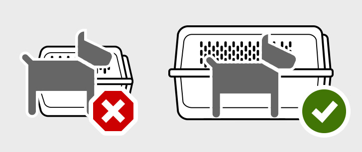 If your pet is travelling with you in the cabin in your container please ensure that the animal has enough space to stand up in its natural position turn around and lie down.