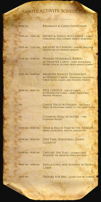 Daily Activity Schedule Rick Riordan